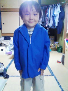 一輝に着せてみたらちょっと大きいような気もするけど、まあいいか。