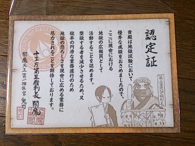 店員に地獄試験受けてみませんか?と言われ、迷ったけど合格したら認定証もらえるということで受けてみた。