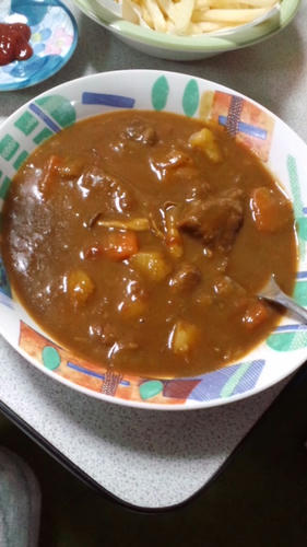 材料は業務スーパーのデミグラルウと牛肉、ホールトマト、赤ワイン、バター、フォンドボー、はちみつ少々だったかな。