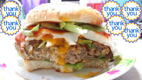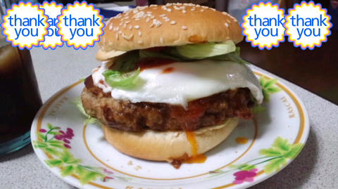 今日のお昼は残りのハンバーグと目玉焼きでハンバーガーにしました(*^o^*)